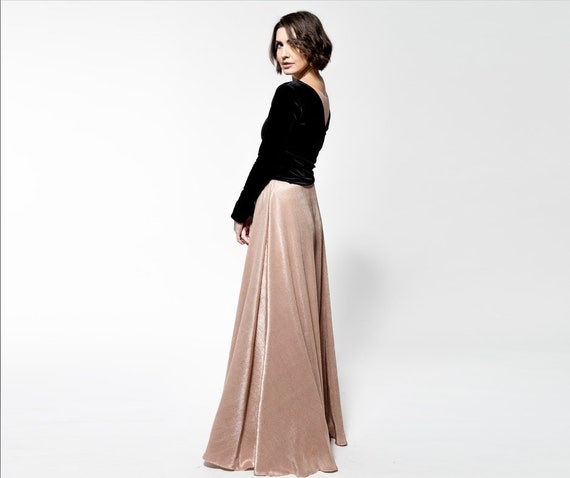 26+ Rose Gold Skirt Outfit PNG. Black printed sweatshirt with rose gold pleated midi skirt. It is a perfect image for a romantic date.